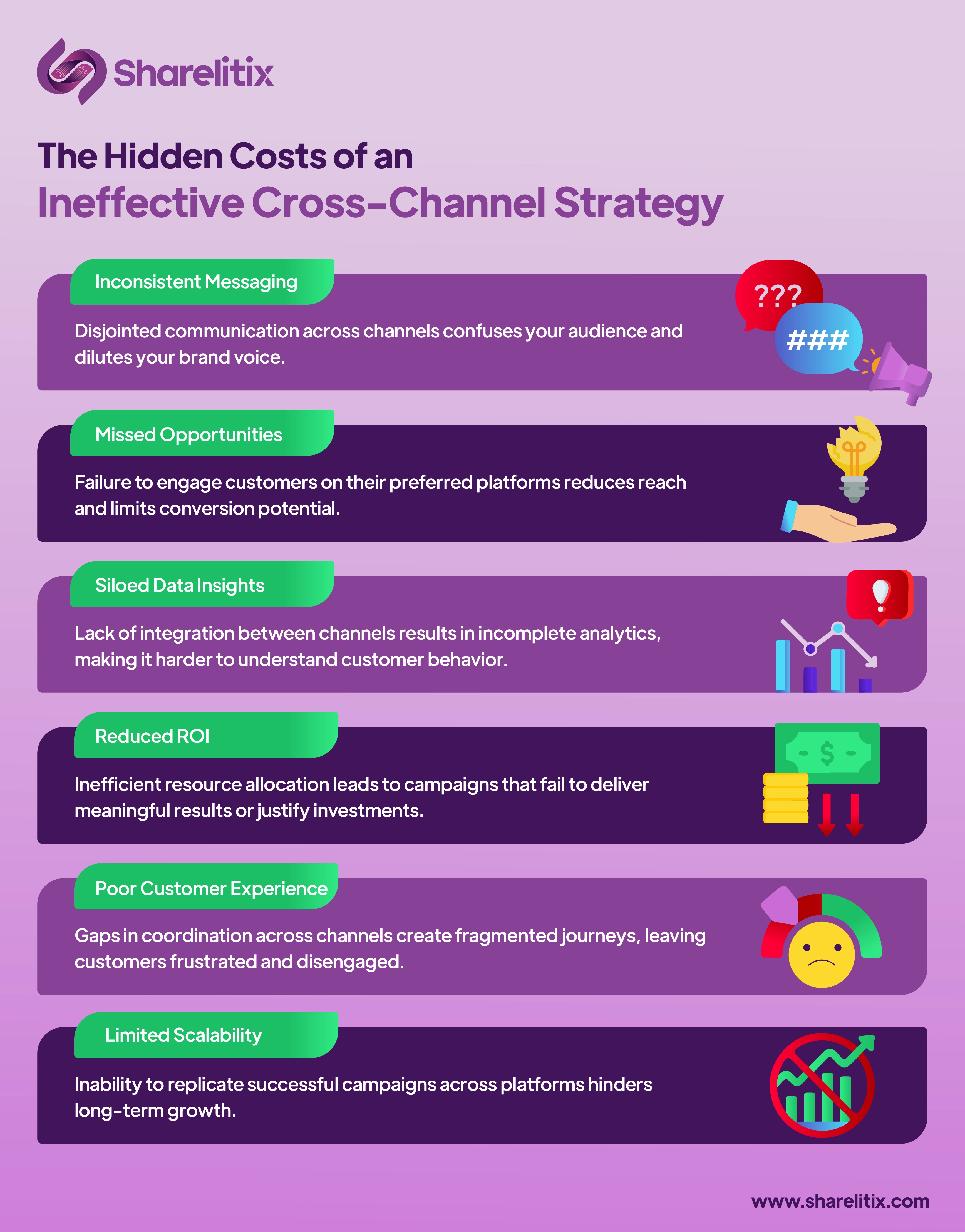 Think of your marketing channels as players on a team—if they don’t work together, the whole strategy collapses. When channels operate in silos, your paid media fails to support email campaigns, your website struggles to attract organic traffic, and inconsistent branding leaves your audience scratching their heads. This disjointed approach reduces impact and weakens engagement.